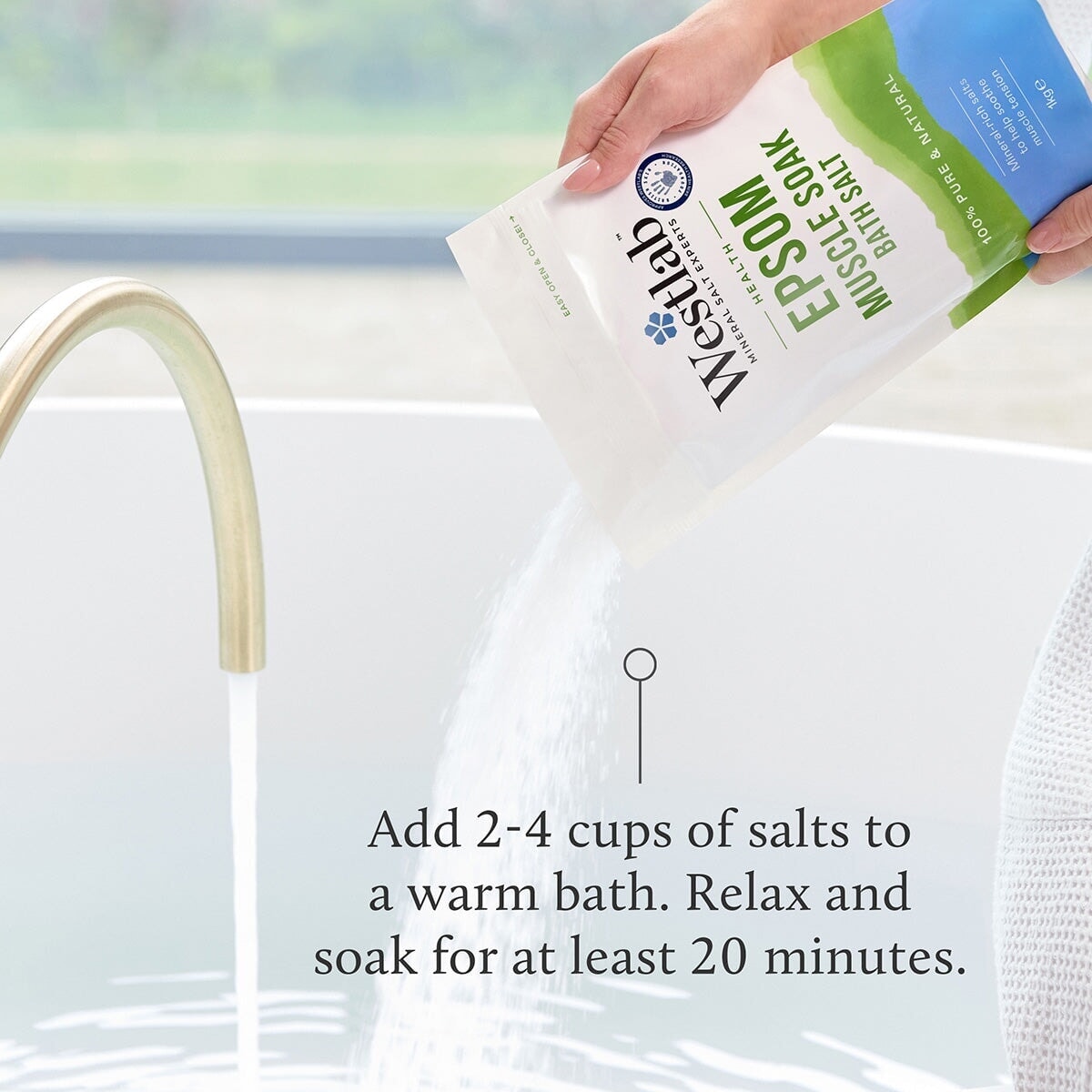 Add 1-4 cups of salts to a warm bath Relax and soak for at least 20 minutes.<p>