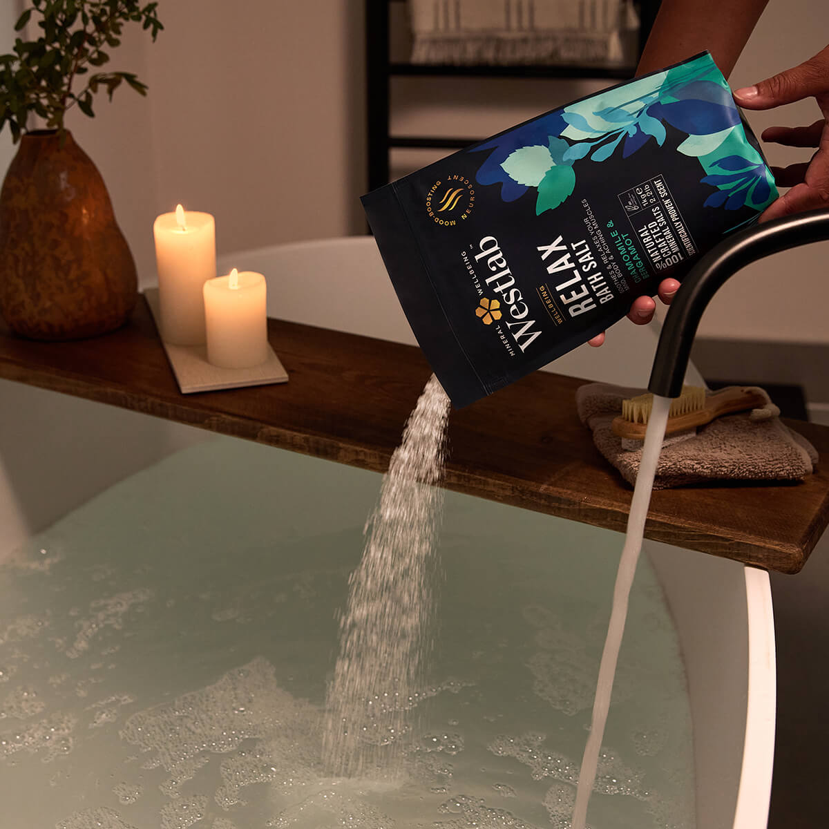 When your day leaves you feeling like you need to escape to a place of peace, the bath is the perfect wellness sanctuary. Shut the door, dim the lights and immerse in Magnesium-rich bath salts infused with mood-boosting neuroscents scientifically-proven to aid relaxation and boost your Wellbeing… Soak the day away, then emerge feeling yourself again, ready to take on whatever tomorrow brings. Westlab. Dissolve your day away.